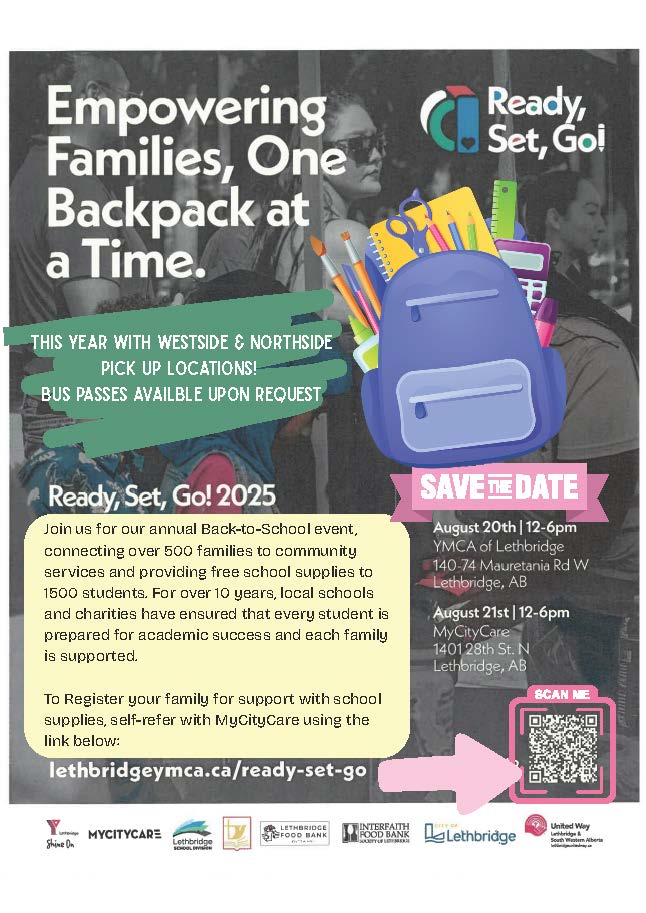 Back to all posts Posted on May 20, 2025 Ready Set Go If your children attend school in Lethbridge and you are not sure you will be able to afford school supplies for the 2025-2026 school year, please click on the link for more information about the Ready Set Go program. Ready, Set, Go Prev Post Next Post